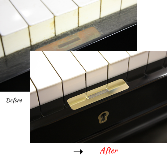 外装がいつの間にか曇ってきたり、ペダルや蝶番、メーカー名等の金属部分が錆び付いている、拭いても汚れが落ちずそのままにしているという事はないでしょうか?これではとてもピアノと長く楽しく付き合う事はできません。